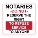 There are federal, state, and sometimes local anti-discrimination laws. There are different laws for discrimination in employment, housing, and places of public accommodation. The law may require a poster to be displayed to the public. I have the poster on my website and a copy in my mobile notary briefcase.