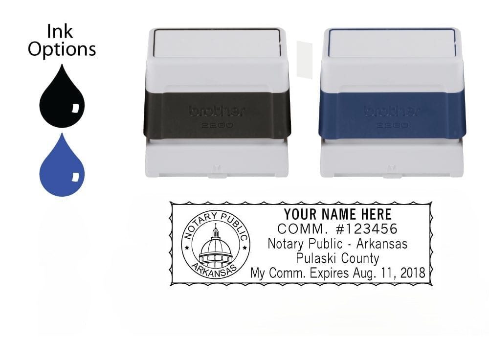 Choose your desired Arkansas notary stamp type below. Customize your notary stamp type, stamp color, and ink color.